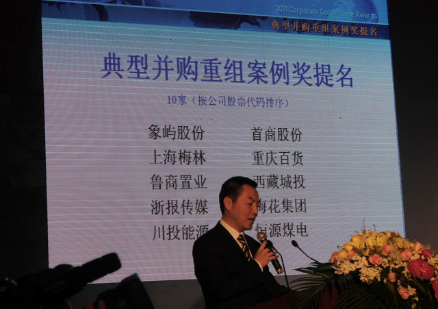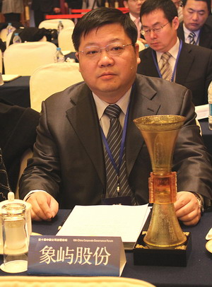 2011年12月19日,由上海證券交易所主辦、國務(wù)院國資委和經(jīng)濟合作與發(fā)展組織(OECD)共同支持的第十屆中國公司治理論壇在上海召開。中國證監(jiān)會主席郭樹清、上海市委副書記、市長韓正、上海市委常委、副市長屠光紹等領(lǐng)導出席論壇并給獲得公司治理專項獎的各獲獎上市公司頒獎。象嶼集團副總裁、象嶼股份副董事長陳方代表公司應邀出席論壇。今年,象嶼股份因其在歷時2年多的破產(chǎn)重整和資產(chǎn)重組中的優(yōu)良表現(xiàn)和創(chuàng)新而獲得“典型并購重組案例獎”提名。此獎項代表著業(yè)界和上交所對于象嶼股份成功借殼上市的肯定和贊賞。