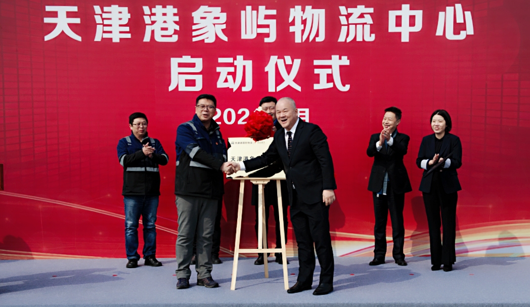 天津港集團(tuán)業(yè)務(wù)經(jīng)營部物流中心主任劉鵬,天津港國際物流黨總支書記、董事長趙明,天津港國際物流黨總支副書記、總經(jīng)理趙毅,象嶼速傳總經(jīng)理孫剛,象嶼速傳副總經(jīng)理胡方等為天津港象嶼物流中心揭牌。